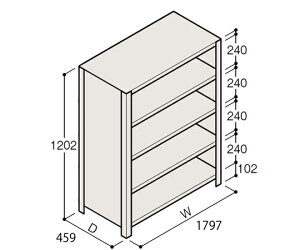 商品名:イトーキ/ITOKI 軽量棚 ERR密閉型 H1200×W1800×D450 有効棚 4段 1個 ●オフィス、工場、倉庫等、さまざまな物流環境の幅広いニーズにお応えする軽量棚●クラス・トップ水準の棚板...