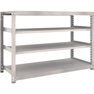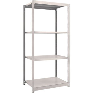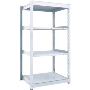 解体が間単に出来ます。 ●寸法:W1800×D300×H1200mm ●段数:4段 ●耐荷重(棚1段当り):150kg ●耐荷重(棚1連当り):750kg ●本体色:ホワイトグレー ●25mmピッチ段替え可能...