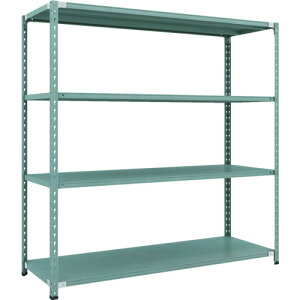 解体が間単に出来ます。 ●寸法:W1500×D450×H1800mm ●段数:4段 ●耐荷重(棚1段当り):200kg ●耐荷重(棚1連当り):1000kg ●本体色:グリーン ●25mmピッチ段替え可能 ...