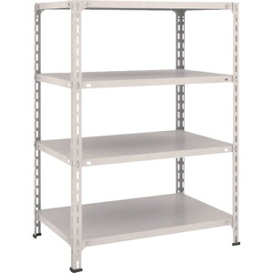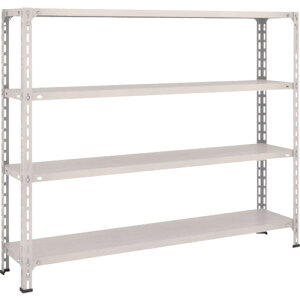 解体が間単に出来ます。 ●寸法:W1500×D450×H1800mm ●段数:4段 ●耐荷重(棚1段当り):300kg ●耐荷重(棚1連当り):2000kg ●本体色:アイボリー ●50mmピッチ段替え可能...