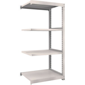 差し込むだけの簡単組立。 ●寸法:W1800×D750×H2100mm ●段数:4段 ●耐荷重(棚1段当り):1000kg ●耐荷重(棚1連当り):5000kg ●本体色:ホワイトグレー ●棚板は25mmピッチで調整可能...