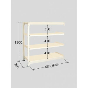 解体が間単に出来ます。 ●寸法:W1500×D600×H1800mm ●段数:4段 ●耐荷重(棚1段当り):500kg ●耐荷重(棚1連当り):2000kg ●本体色:アイボリー ●50mmピッチ段替え可能...