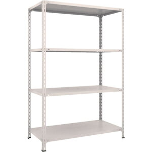 解体が間単に出来ます。 ●寸法:W1500×D750×H1800mm ●段数:4段 ●耐荷重(棚1段当り):300kg ●耐荷重(棚1連当り):2000kg ●本体色:アイボリー ●50mmピッチ段替え可能...