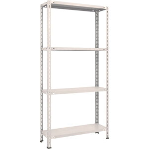 解体が間単に出来ます。 ●寸法:W1200×D600×H1200mm ●段数:4段 ●耐荷重(棚1段当り):200kg ●耐荷重(棚1連当り):1000kg ●本体色:アイボリー ●25mmピッチ段替え可能...
