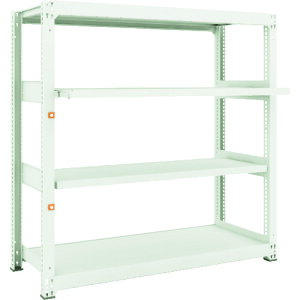 500mm ●段数:4段 ●耐荷重(棚1段当り):200kg ●耐荷重(棚1連当り):1000kg ●本体色:アイボリー ●25mmピッチ段替え可能 ●注意事項:棚板段数は、天棚及...