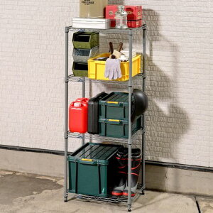 商品サイズ:幅61cmx奥行46cmx高さ151cm 耐荷重:全体:320kg/棚板1枚あたり:80kg 本体重量:10.8kg 材質:棚板・ポール:スチール/スリーブ・アジャスター:ABS樹脂 セット内容:棚板x4、ポールx4、アジ...
