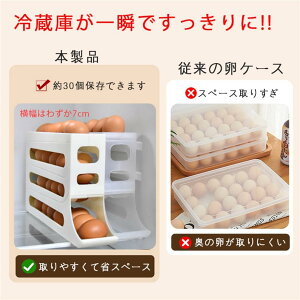 【容量が大きい】 サイズ:約36cm×20cm×7cm。4段で合計約30個の卵を保管できる、冷蔵庫用卵収納ラックです。従来の卵入れより容量が大きく、3人家族なら、これ1個で約1週間分の卵を収納できます...
