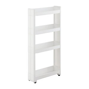 横幅12.5cmの収納ワゴンです。 わずかな隙間にワゴンが収まり、スマートに収納してくれます。 両側から取り出しやすいオープンな棚は調味料や保存飲料水を整理しておくと便利です。 コロ付きなので引き出しの感覚で出し入れをすることが