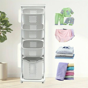 【大容量】ランドリーバスケットの上下1/2/3/4層は洗濯物を分類でき、バスケットには着替えやタオルなどを収納でき、上段のトレイにはシャワージェル、洗濯布などを収納できます。キッチンやリビングでも、日常でよく使う小物を収納でき