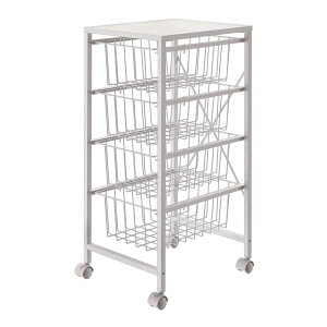 サイズ/約幅40.5×奥行63×高さ166cm バスケット1個あたり:約幅36×奥行46×高さ30cm 重量/約9.7kg 内容量/1台 材質/本体:スチール(メラミン焼付塗装) 天板:ボンデ鋼板 バスケット:ポリエチレ