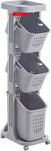 材質:PP サイズ:3段:40*26*78.5cm 4段:40*26*108.5cm。下段のバスケットはワゴンから降ろしてそのまま洗濯機へ持って行けるので便利です。