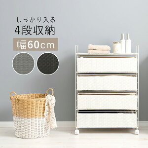 ランドリーボックス チェスト 60センチ幅 WH色 アイアンランドリー 4段引出し キャスター付 水濡れに強いポリエチレン製 ホワイト色(白色) アイアン(スチール)フレームのおしゃれなランドリーボックスです...