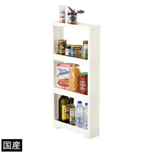 わずかなすき間を小物収納庫に!どこにでもあるわずかなデッドスペースに調味料やボトル類をすっきり収納。まっすぐ動くコロ付なので、引出しの間隔で出し入れできます。