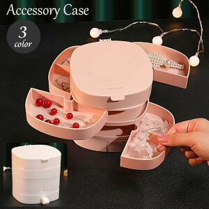 回転トレイで取り出しやすいアクセサリーケース。ピアス?イヤリング?ネックレス?指輪など小さめのアクセサリーにピッタリ?コンパクトサイズでいつものアクセサリーのスタンバイに◎【サイズについて】画像をご参照ください。【素材につ