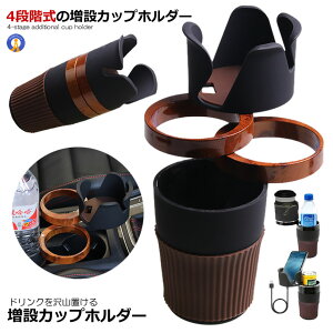 運転席周りをきれいに! ドライブがさらに楽しくなる♪ 360度回転ドリンクホルダー 既存のドリンクホルダーに設置するだけで ホルダーが4カップに増える…! ●いろいろな缶やボトルに対応 コンビニカップコーヒーやペットボトルは もち