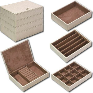 おすすめアクセサリーをたっぷり収納できる、シンプルなトレースタイルのジュエリーボックスです。積み重ねることで場所を取らずに収納可能ですが、単品にして別々でも使用していただけます。高級感のあるPUレザーにステッチを施して