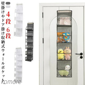 壁面のデットスペースを有効活用♪ 小物類やバッグなど便利に収納できるフック付き4段/6段ウォールポケットです。 クリア素材で中身が見え、使い勝手も抜群◎ 【サイズにつ...