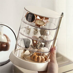 化粧パフケース 収納ケース 透明 回転式 4段 3段 2段 化粧コットンケース 通気ホール 層分けてスッキリ整理整頓、化粧パフ収納ケースが新 シンプルで高級感とお洒落感も失わない<...
