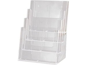 シンプルな4段の卓上用カタログホルダーです。【仕様】●対応サイズ:A4●サイズ:本体/幅237mm×奥行218mm×高さ340mm、カタログ収納部サイズ/幅230mm×奥行32mm●材質:スチロール樹脂...