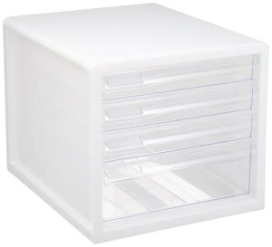 特長●収納のスタンダードサイズ。書類、身の回りの小物の収納に。用途●書類、身の回りの小物の収納に。仕様●間口(mm):341●奥行(mm):268●高さ(mm):218●段数(段):4●色:ホワイト●本体色:ホワイト●引出し色:透明●...