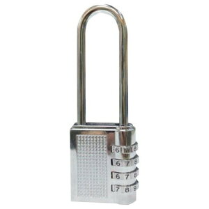 【商品解説】【特長】●本格的な4段ロックの吊長タイプです。【仕様】●幅(mm):42●ダイヤル:4桁●ツル径(mm):6.2●色:シルバー●長さ(mm):78【材質/仕上】●本体:亜鉛ダイカスト●ツル:鉄【スペック】...