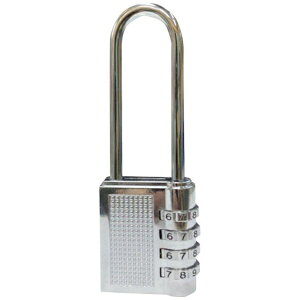 【特長】●本格的な4段ロックの吊長タイプです。【仕様】●幅(mm):42●ダイヤル:4桁●ツル径(mm):6.2●色:シルバー●長さ(mm):78【材質/仕上】●本体:亜鉛ダイカスト●ツル:鉄