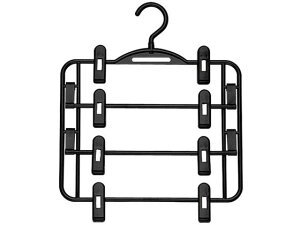 4着収納ズボンハンガー リバース アップダウンハンガー ブラック 日本製 調節可能なクリップ2個×4段付 回転フック スカート パンツ クリップ ピンチ すべりどめ ピンチ付 滑らない 省スペース クローゼット洋服...