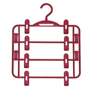 【商品説明】スカートやスラックスなど計4枚をまとめて収納できるクリップ式ハンガー。省スペースに収納可能。クローゼットの中をすっきり整理整頓。【仕様】●サイズ:約幅30×高さ40cm、厚さ/約35mm●重量:約175g●材質:本体・クリッ
