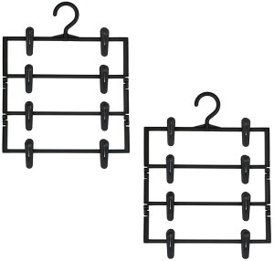 サワフジ 洋服ハンガー すっきり収納 スカートすっきり4段 ブラック 幅300mm 2本組 クリップ付 跡がつかない パンツ ズボン 省スペース クリップ すべらない 収納 物干し スラックス 押し入...