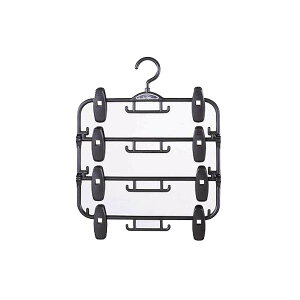 商品名 【スカートハンガーDX4段】 カラー BK サイズ 幅340mm 高さ435mm 厚み33mm 材質 本体・フック・クリップ ポリプロピレン バネ スチール スベリ止め EVA樹脂 コメント スカート4枚+3枚...