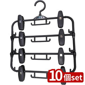 ●省スペースで収納できる、ボトム用ハンガー。クローゼットのポールや壁フックに吊り下げて収納するので折りジワなし!クリップに4枚、ハンガーループ(ボトム内側にあるループ状のひも)をフックに掛けて3枚、計7枚掛けられます。簡