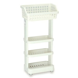 伊勢藤(ISETO) 浴室用ラック 湯楽(4段) ホワイト 幅36.0×奥行21.5×高さ71.5cm 日本製 大型バスケット付 フック付 吸盤 置き型 コーナー 吊り下げ 高さ調節可能 I-225 サイズ:約...