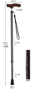 ・介援隊がオススメするファッショナブルステッキシリーズ。 ●サイズ/長さ約70.5〜96.5cm(14段階)、グリップ長さ:約12.5cm、ゴムチップ底径:約2.9cm ●パイプ径/上部:1.9cm...