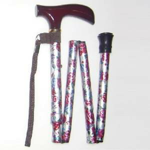 【折りたたみ式花柄ステッキ 楓4段式】 携帯時にコンパクトに収納できるカラフルな花柄の4段折りたたみステッキ! ●長さは、身長にあわせ80〜87.5cmに4段(約2.5cmきざみ)伸縮調節できます...