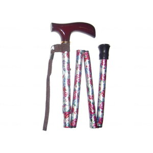 ・おしゃれな花柄ステッキ ・簡単に長さ調節が出来るので身長に合わせて使えます。 ・折りたたみができコンパクトに収納が可能です。 ・手首にかけて持ちやすく杖が倒れないストラップ付き。 ●サイズ:長さ80〜87.5cm(2.5c