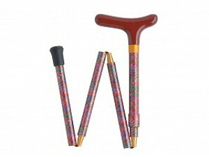 折りたためるので持ち運びに便利。握りは天然木を使用し、杖部分はチェリー柄で優雅なデザインです。軽量なアルミ製、バンド付。プッシュボタンと固定穴で長さの調節が簡単にできます。サイズ:780×855mm(4段階調節・25mmピッチ)杖先径: