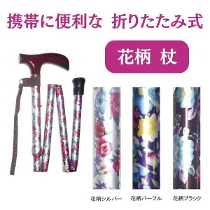 『折りたたみ式花柄ステッキ 楓4段式 k6811 パープル/シルバー/ブラック』介護用品 ステッキ 杖 伸縮調節 折りたたみ 商品紹介 ★オシャレなシルバーエイジにピッタリ! カラフルなステッキでコーディネートしてみませんか...