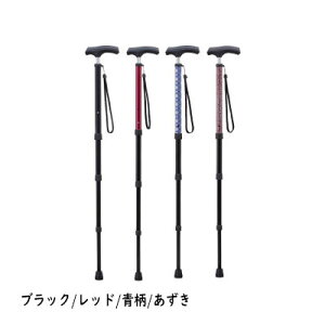 [商品名]バッグにも入るポケットステッキ [カラー]ブラック、レッド、青柄、あずき [材質] グリップ/PP・TPR樹脂、シャフト/アルミ合金、先ゴム/合成ゴム 商品サイズ 長さ/75〜91cm(4段階調整)、収納時/41cm