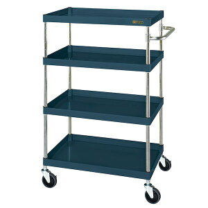 【商品説明】●ボルトレスで組立簡単。●棚板を逆さにするだけで、皿型・フラット型と組み替えることができます。●ゴム車を使用しているツールワゴンですので、表面硬度が低く、弾性を持っている為、凹凸のある路面でも容易に走行し