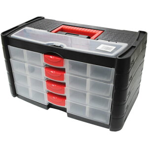 【特長】■仕切り板は取り外しできるので、物のサイズに合わせて、収納スペースを調節できます。■引き出しには、不意に開かないようロックが付いています。■上部には蓋付きの収納と、手持ちできるように、取っ手が付いています。【