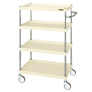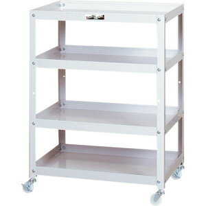 【商品説明】●ボルトレスで組立簡単。●棚板を逆さにするだけで、皿型・フラット型と組み替えることができます。●ゴム車を使用しているツールワゴンですので、表面硬度が低く、弾性を持っている為、凹凸のある路面でも容易に走行し