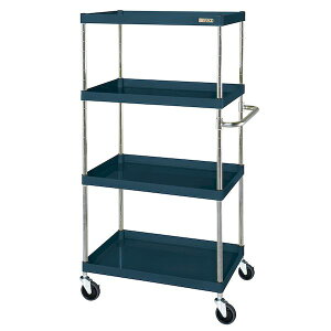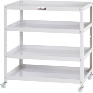 【商品説明】●ボルトレスで組立簡単。●棚板を逆さにするだけで、皿型・フラット型と組み替えることができます。●ゴム車を使用しているツールワゴンですので、表面硬度が低く、弾性を持っている為、凹凸のある路面でも容易に走行し