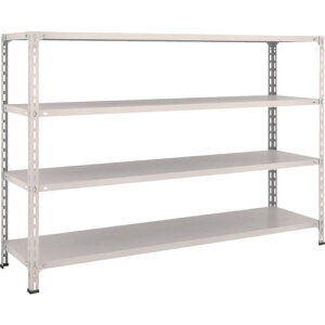 簡単ボルトレス構造なので組立て、中板移動、解体が間単に出来ます。 ●寸法:W1200×D600×H1800mm ●段数:4段 ●耐荷重(棚1段当り):300kg ●耐荷重(棚1連当り):2000kg ●本体色:アイボリー ...