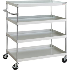 ・ステンレスアジャスターをつけたワゴンです。・最大積載量(kg/台):150・均等積載量(kg/段):100・間口(mm):900・奥行(mm):600・高さ(mm):1092・段数(段):4・支柱径(mm):25.4・こぼれ止め高さ...