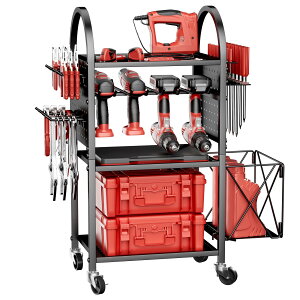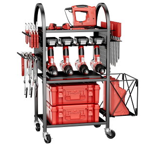 耐荷重 150kg の頑丈ツールワゴン:工具精通の職人の方にもおすすめ、ガレージ必需品です。スマート設計で十分な収納力を発揮し、ドリルは最大 8〜12 本収納可能で、ショックアブソーバー付きの大型ロータリーハンマードリルにも対応...