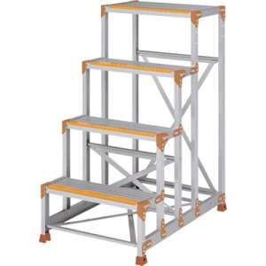■アルミ製作業用踏台 グレーチングタイプ 4段 高サ1.2m 天板寸法600×400 段高300mm 階段両手スリ付き TSFGR-4612-TR300の特長 ●作業用踏台と階段両手すりのセットになります ...