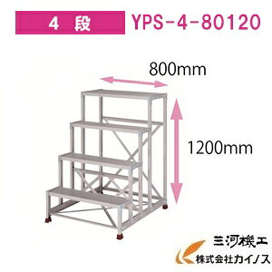 アルミ製作業用踏台 グレーチングタイプ 4段 高さ1.2m 天板寸法600×400 段高300mm 階段片手すり天場二方付き。