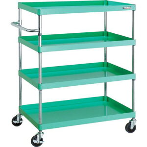 【メーカー】 ●トラスコ中山(株) 【仕様】 ●最大積載量(kg/台):150●均等積載量(kg/段):100●色:ヤンググリーン●間口(mm):690●奥行(mm):400●高さ(mm):880●段数(段):4●支柱径(mm):