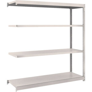 ●均等積載量:150kg/段●最大積載量:1000kg/台●ボルトを1本も使用していないボルトレス構造で、分解・組み立て作業が簡単。組立作業の時間を大幅に短縮できます。●棚の段数変更が小刻みな25mmピッチで、自由に調整、変更ができます。
