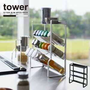 スリムスパイスラック タワー 4段 スリムでも収納力抜群大容量スパイスラック 調理で使うスパイスボトルを、省スペースにまとめて収納できる『 tower( タワー )スリムスパイスラック 4段 』。台所のコンロ横や調理台にも収まるスリム設計